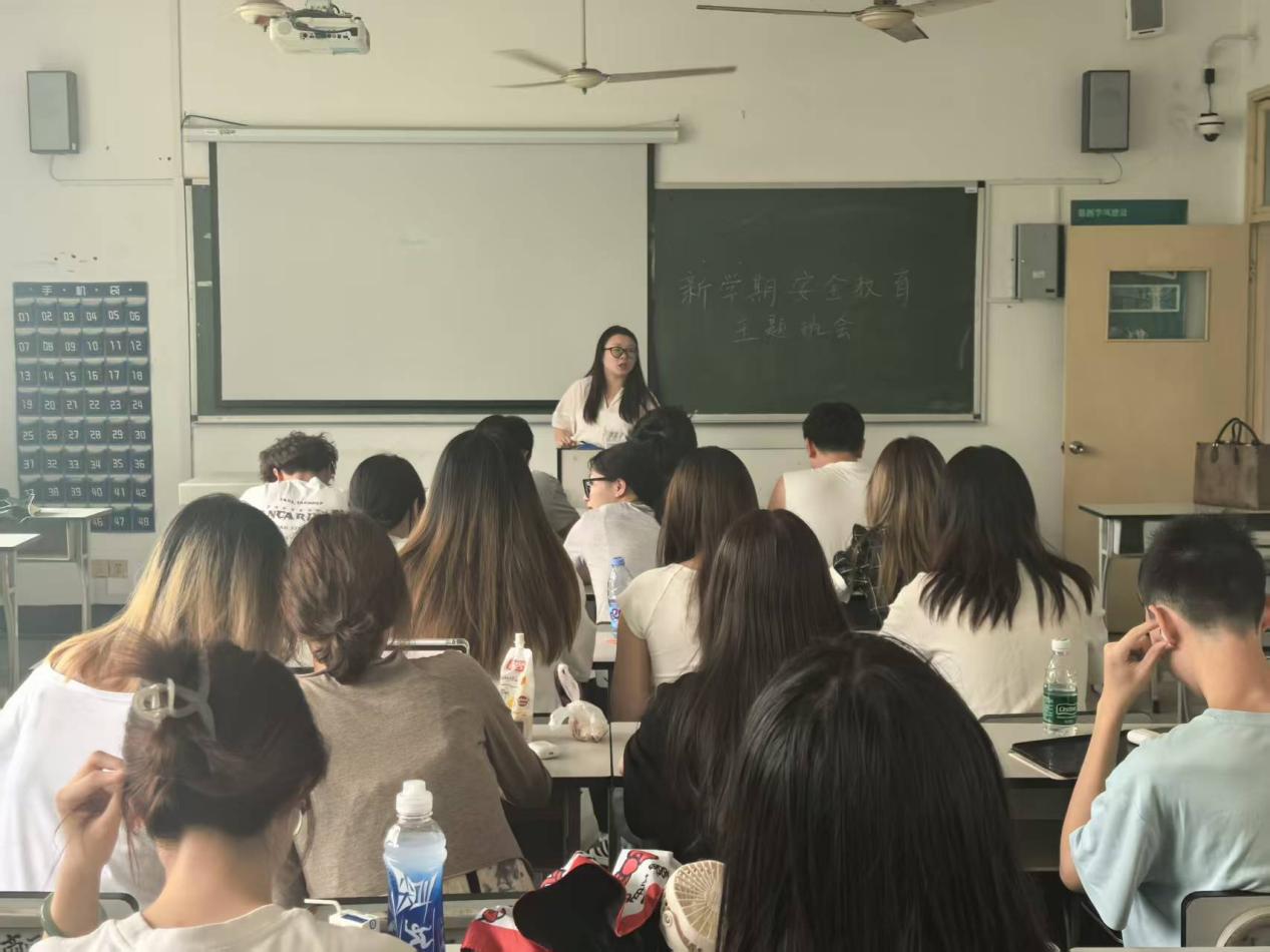 大二的辅导员刘新雨和阮崇晗围绕学生新学期安全需求,聚焦四大核心板块展开。一是宿舍安全,强调严禁使用违规电器、定期排查消防隐患,杜绝私拉乱接电线;二是出行安全,提醒外出遵守交通规则,避免夜间独行,警惕陌生搭讪;三是网络安全,警示防范电信诈骗、网络借贷陷阱,保护个人信息不泄露;四是学业与生活安全,引导合理安排作息,平衡学习与娱乐,遇心理困惑及时求助。班会通过案例分析、互动提问强化安全意识,帮助同学们将安全理念融入日常,为新学期学习生活筑牢安全防线。