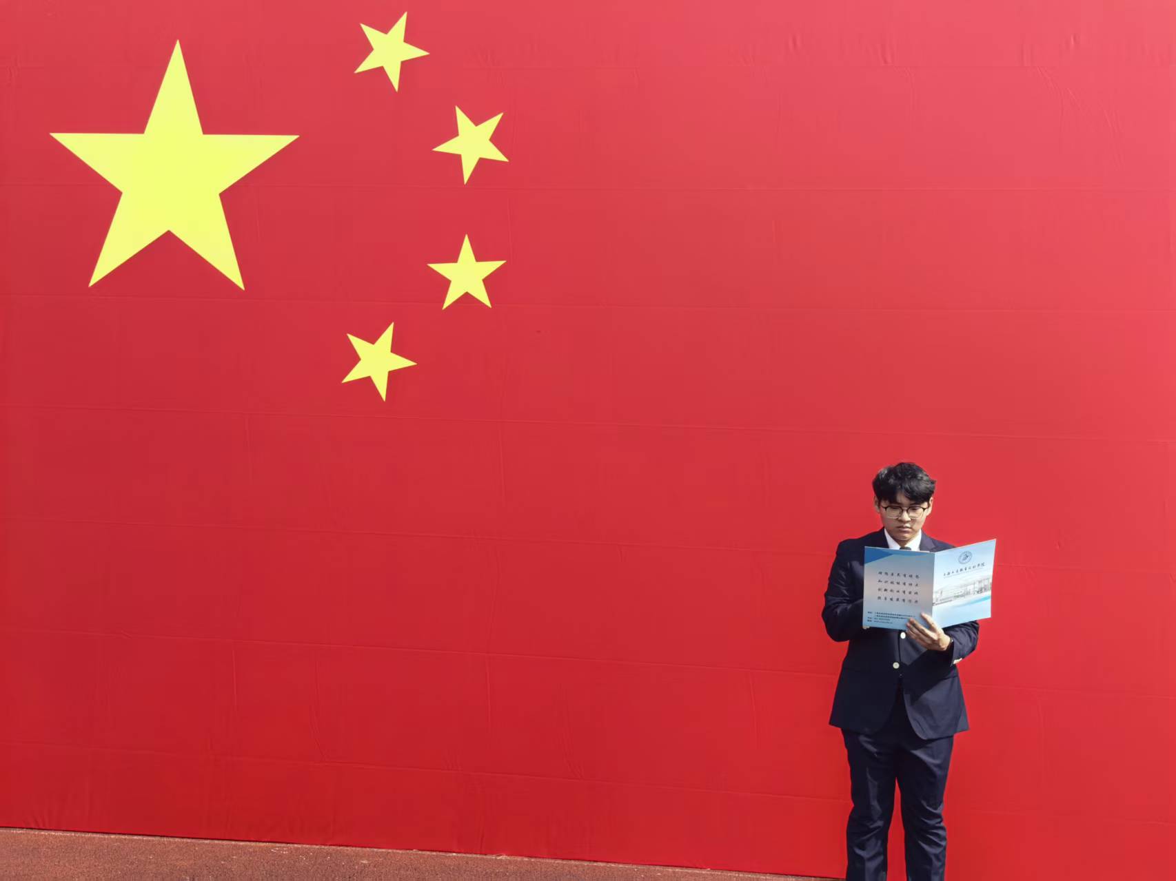 升旗仪式后,师生纷纷与国旗合影留念,深情告白伟大的祖国。愿以寸心,寄我山河,五星闪耀,永不褪色。
