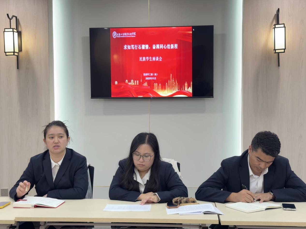 为进一步加强学生教育引导工作,切实了解民族学生学习生活需求,助力学生全面成长成才,党委学工部(处)于11月3日在青浦校区组织开展民族学生座谈会。党委学工部(处)部长陈旭,民族学生专职辅导员麦吾兰·凯赛尔、阿迪兰·阿斯木以及两校区民族学生参加座谈会。