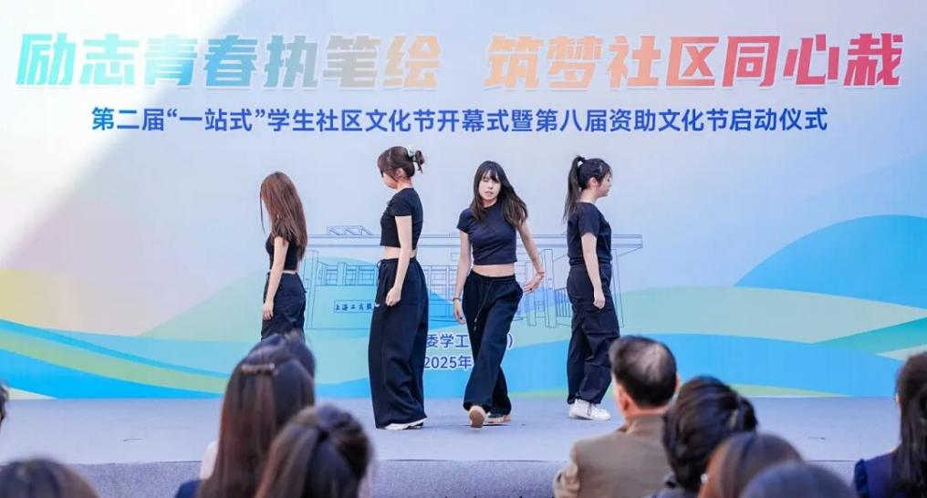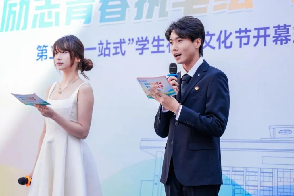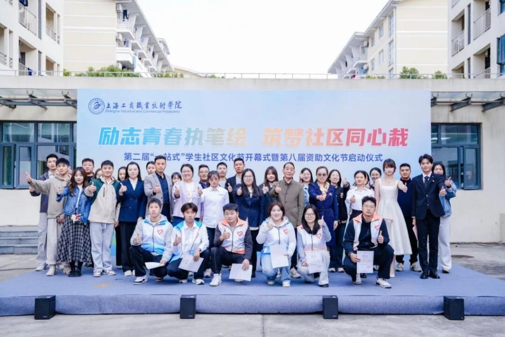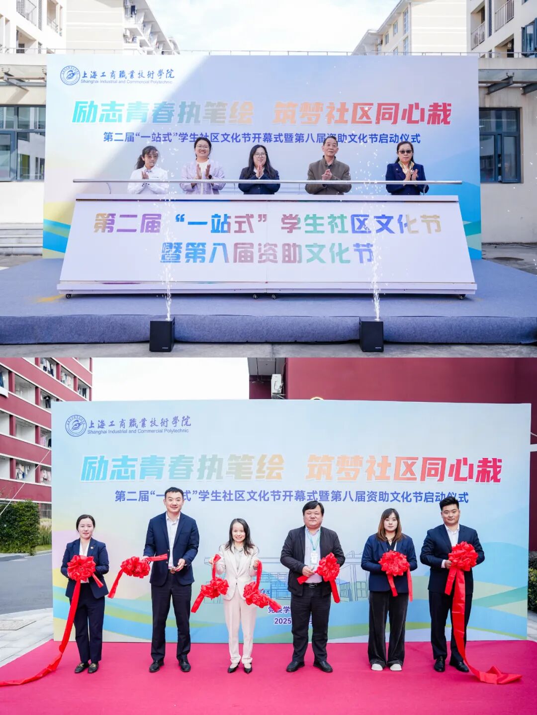 嘉定校区由赵双全、陈旭、王丽茹、许慧芳、马孝彦共同上台推动启动按钮;青浦校区由陈其、朱燕、张肃、蓝雪、马丹飞、侍现龙进行启动仪式剪彩,第二届“一站式”学生社区文化节暨第八届资助文化节正式启动。
