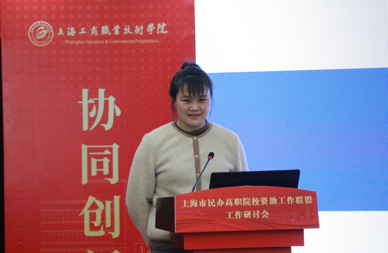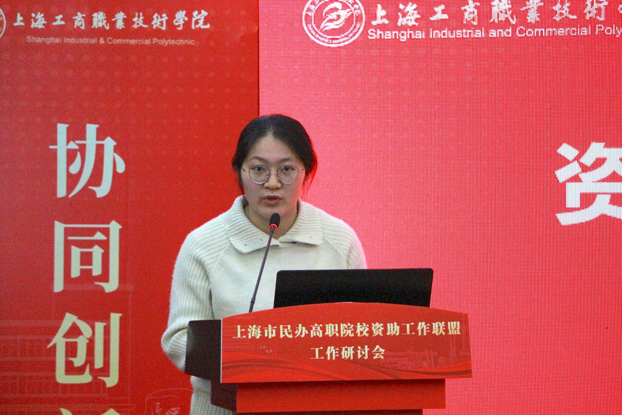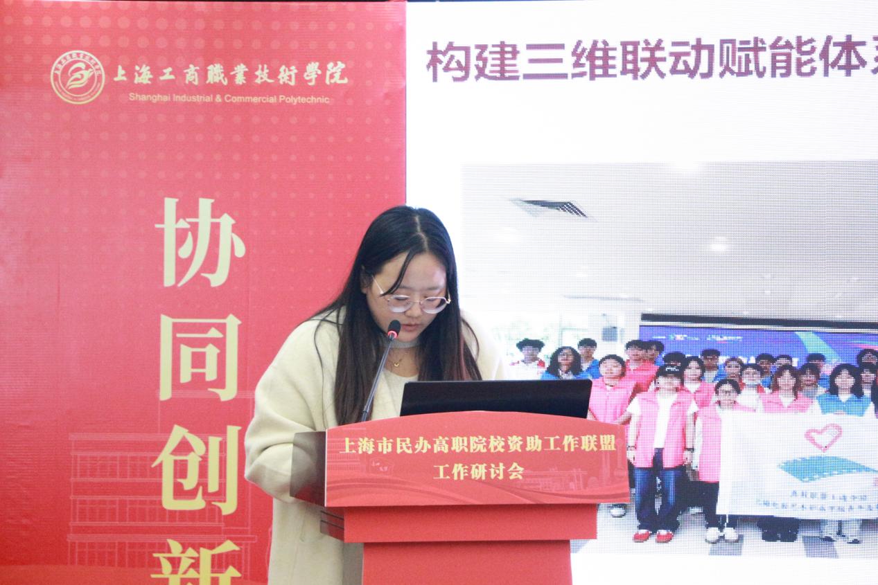 上海工商外国语职业学院学工部副部长陈静静分享学校围绕“助学+育人”双统筹,以“暖心、启智、健身”为主题勾勒资助工作“同心圆”。