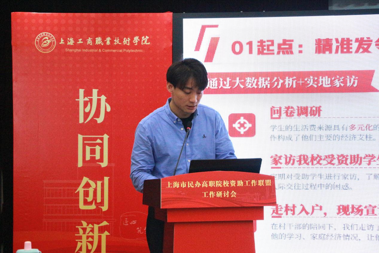 上海工商职业技术学院学工部(处)副部(处)长郭旭分享学校以 “扶困扶智扶志” 为目标,构建四级联动工作机制和 “奖助贷勤减免” 六位一体资助体系,通过连续八届开展的资助文化节、优秀学子宣讲等载体,形成“受助-自助-助人”的良性循环。