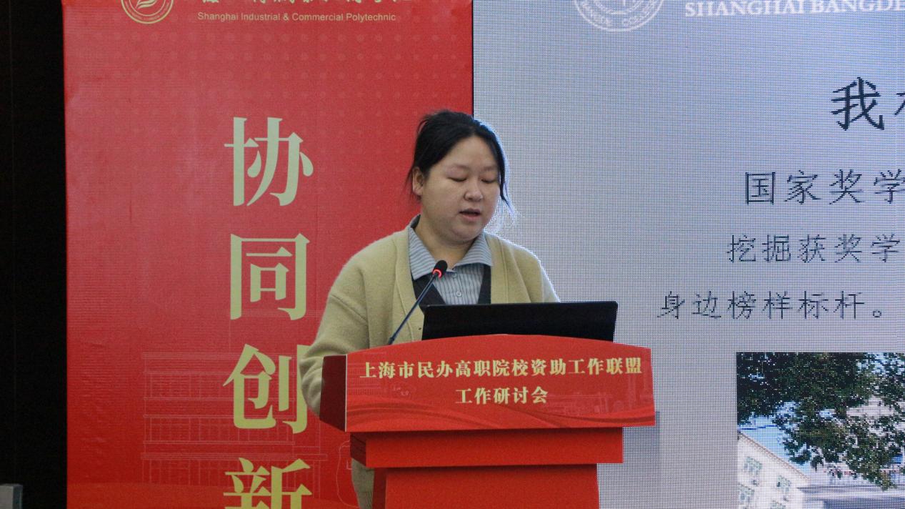 上海邦德职业技术学院学生处资助管理肖真分享学校构建“1+2+N”发展型资助模式,以 “学生全面成长” 为核心锚点,以多样化活动深化育人成效。