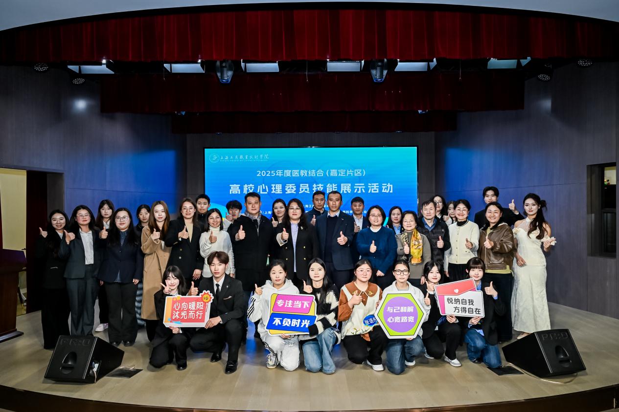 为深入贯彻党的二十大“重视心理健康和精神卫生”战略部署,全面落实《全面加强和改进新时代学生心理健康工作专项行动计划(2023—2025年)》要求,进一步深化嘉定区“医教结合”心理健康服务体系建设,2025年12月4日17:00,2025年度医教结合(嘉定片区)高校心理委员技能展示活动在我校嘉定校区新报告厅成功举办。