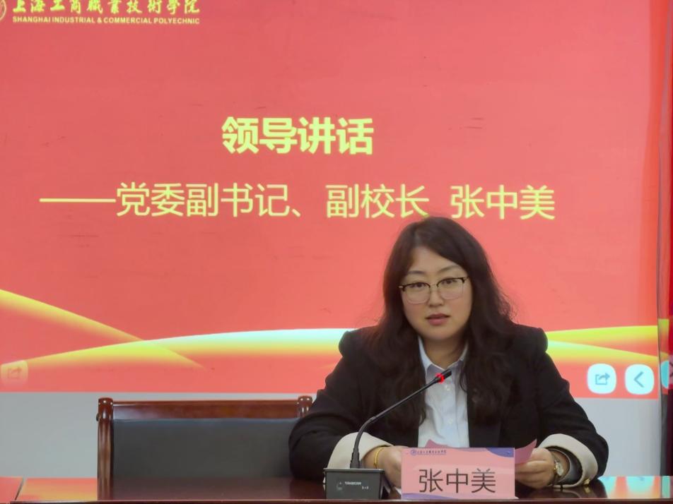 2025年12月10日,上海工商职业技术学院2025-2026学年第一学期辅导员助理交流总结会在嘉定校区行政北楼报告厅顺利召开。党委副书记、副校长张中美出席并讲话,各学院党总支(直属党支部)副书记、党委学工部(处)相关人员、2025级全体辅导员及辅导员助理、2024级辅导员助理代表共同参会。