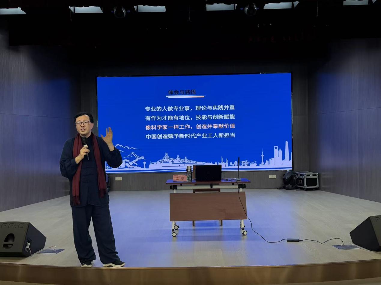 本次讲堂,王军以《以“匠心”赋能人生,用“创新”贡献价值》为主题,以新时代产业工人可以像科学家一样工作为切入点,通过自身的工作经历为同学们生动形象地讲述了构建“核心”竞争力、以“匠心”赋能人生、用“创新”贡献价值的深刻含义,诠释了平凡岗位创造不平凡业绩的“匠心”精神。