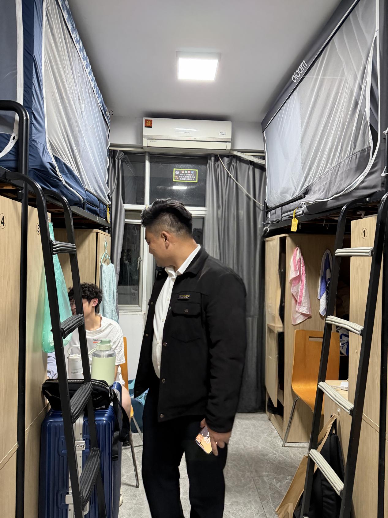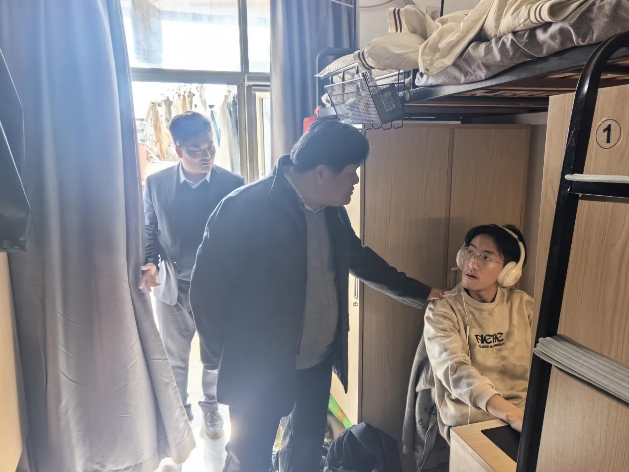 此次检查由我院党总支副书记侍现龙带队,全体辅导员共同参与,严格遵循 “全覆盖、无死角、重实效” 的工作原则。深入校内各宿舍楼栋,逐间走访学生宿舍,对宿舍内潜在风险点开展系统性排查。在安全隐患排查方面,重点针对违规使用大功率电器、私拉乱接电线、阳台堆积易燃杂物、室内吸烟等易引发安全事故的行为进行细致核查,坚决从源头遏制安全风险;在卫生管理检查方面,同步对宿舍内务整理规范度、环境卫生清洁度、物品摆放有序度等情况进行全面评估,现场引导学生认识良好生活习惯对身心健康的重要性,助力学生养成整洁有序的住宿生活方式。