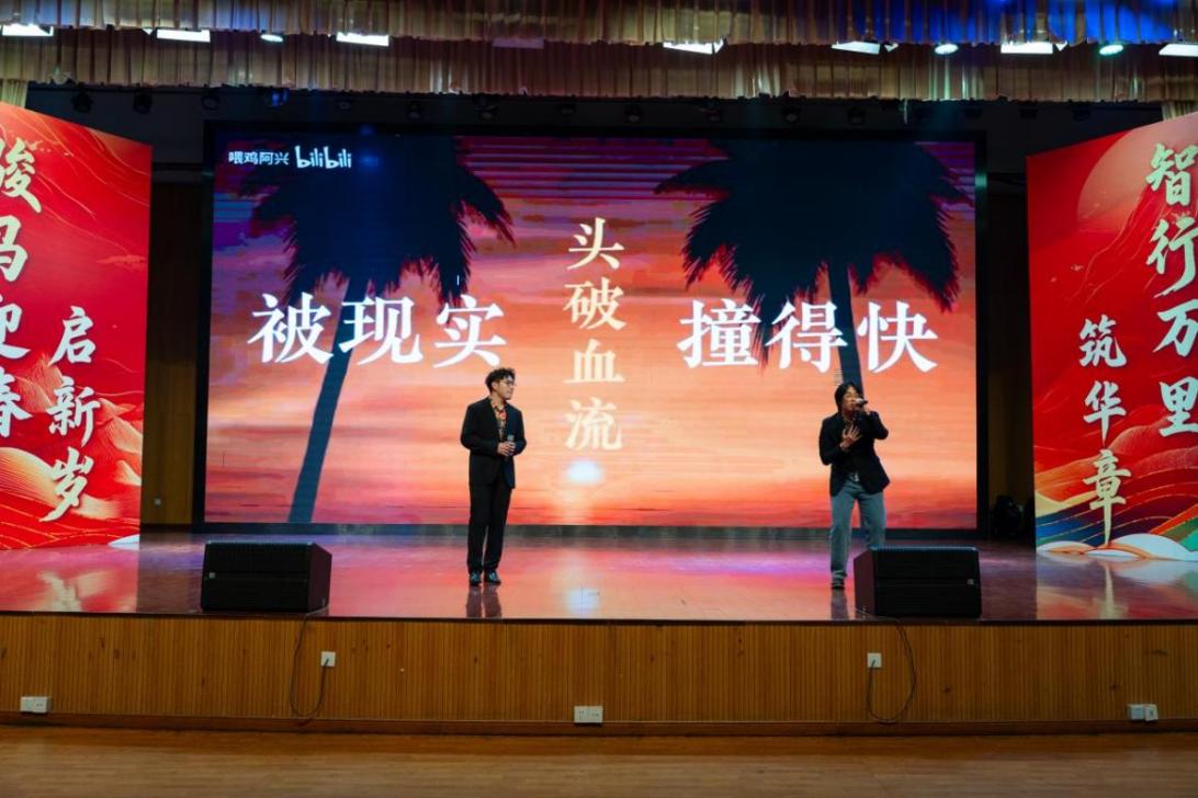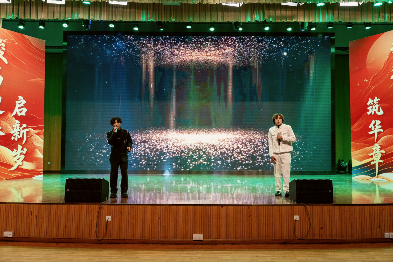 院长致辞后,第一篇章正式启幕。学院“十佳歌手”贾毅泽、吴宇童带来经典歌曲《荒漠上行走》,悠扬旋律与深情演绎勾勒出青年学子逐梦前行的坚定模样,引发全场共鸣。