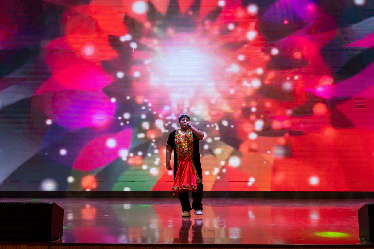 歌曲串烧《别怕变老》《Aziz Yar(心爱的人)》《骑士》融合流行说唱、民族音乐、摇滚等多元风格,喀什理工职业技术学院访学学生阿卜来提·阿卜杜热西提等四位歌手用歌声跨越地域界限,传递出文化的多元包容,彰显学院开放交流的育人氛围;