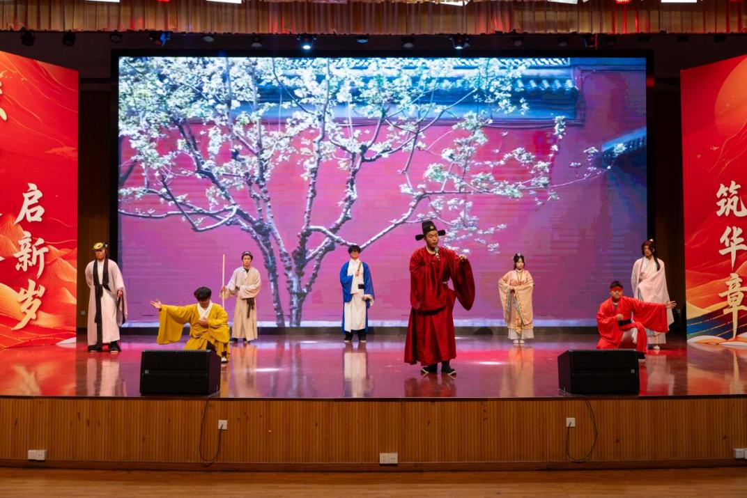 贾毅泽、徐羽等九位同学带来的《八仙过海》国风情景乐演,将传统神话故事与现代元素巧妙融合,为观众呈现了一场兼具文化底蕴与创意活力的视听盛宴。每个节目都精心编排,演员们也都全力以赴,台下观众纷纷举起手机记录精彩瞬间,现场化作光影交织的欢乐海洋。