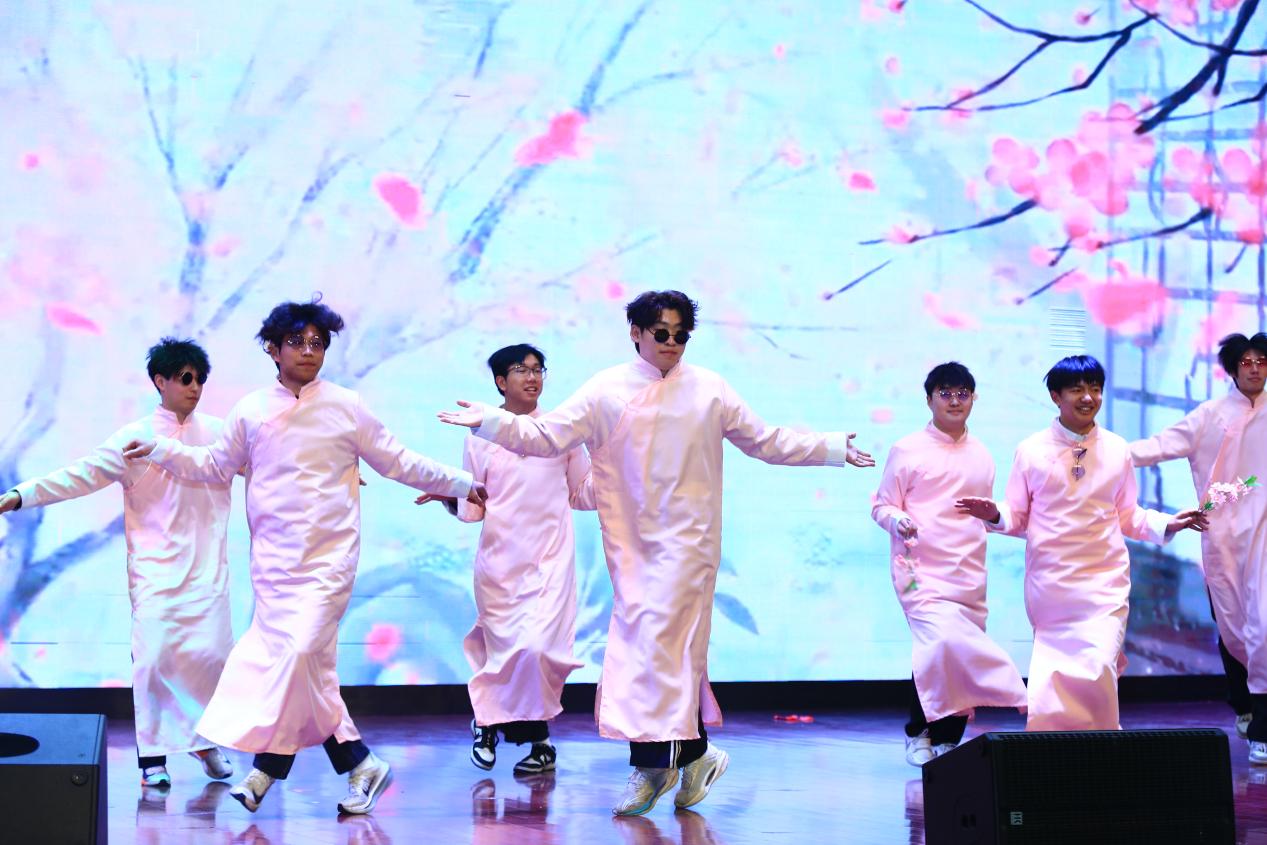 舞蹈《桃花朵朵开》以欢快的节奏、活泼的舞姿,展现出我院学子蓬勃的青春朝气;