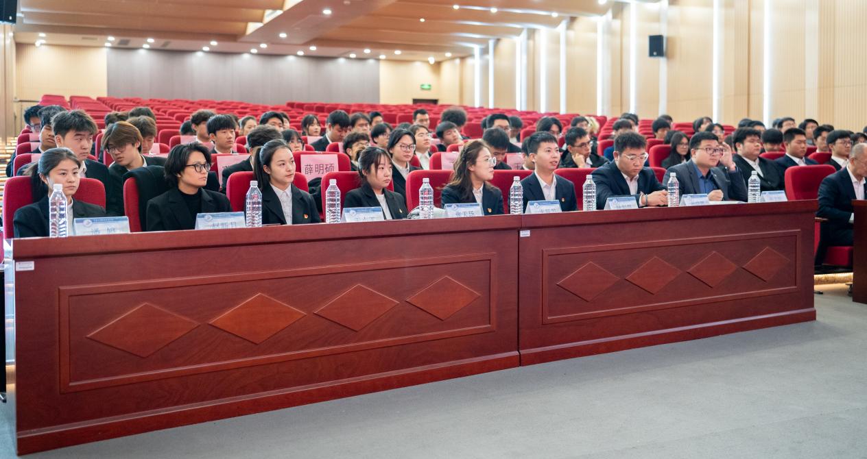 最后,院长叶建农作总结讲话并为学院第十一届团委学生会全体成员提出殷切期望。他向新受聘的学生干部表示热烈祝贺,同时提出三点要求:一是要坚定理想信念,树立正确的价值观,将个人成长融入学院发展和国家建设之中,做有理想、敢担当、能吃苦、肯奋斗的新时代好青年;二是要锤炼过硬本领,既要扎实学好专业知识,也要注重提升沟通协调、组织策划等综合能力,以过硬素质应对各项工作挑战;三是要坚守服务初心,始终把服务同学放在首位,倾听同学心声,回应同学诉求,切实为同学解难题、办实事。他期望学院第十一届团委学生会能够立足智能制造与汽车学院的专业特色和学科优势,充分发挥桥梁纽带作用,搭建好师生沟通的坚实平台,凝聚全体同学的智慧与力量,开展更多富有学院特色、贴合学生需求的活动,推动学院学生工作再上新台阶。