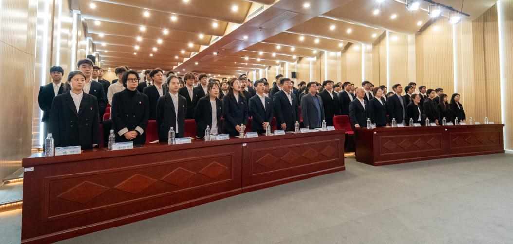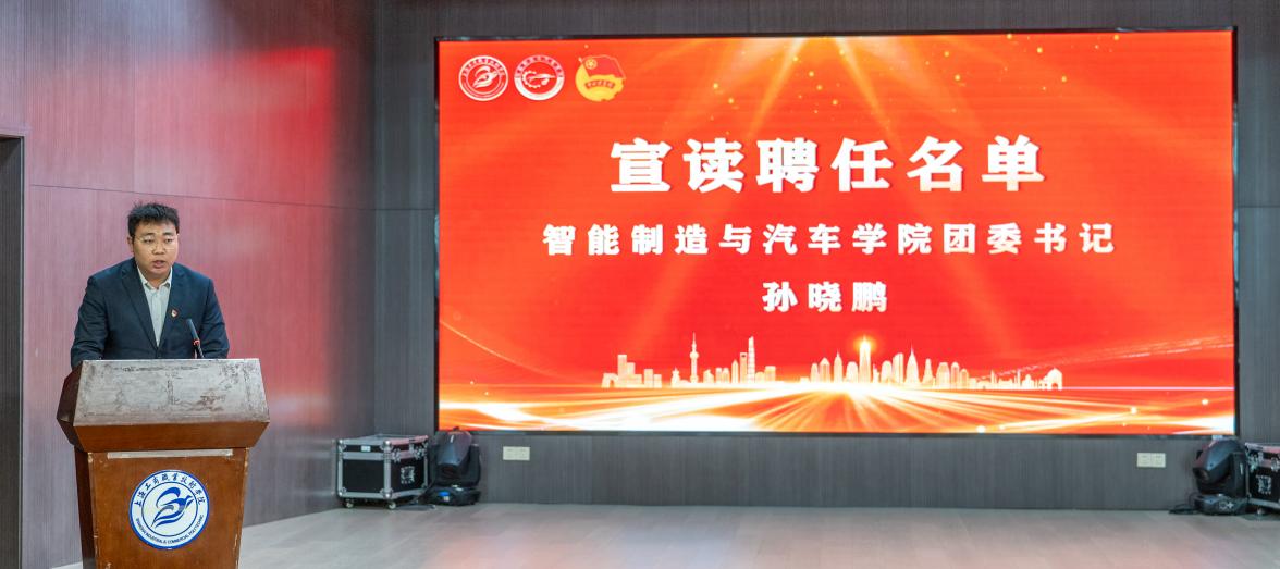 2025年12月1日下午,智能制造与汽车学院第十一届团委学生会全体大会暨聘任仪式在嘉定校区新报告厅隆重举行。学院院长叶建农、党总支书记年文韬、党总支副书记侯静、团委书记孙晓鹏及全体辅导员莅临现场指导,学院第十一届团委学生会全体成员齐聚一堂,共同见证这一重要时刻。