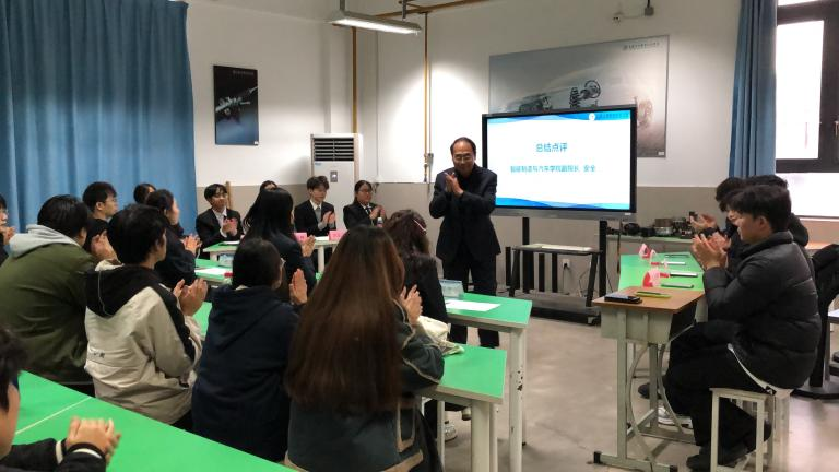 赛后,智能制造与汽车学院副院长安全对本次辩论赛进行总结点评。他从青年社交成长的角度出发,肯定了双方辩手的精彩表现与深入思考,并给出真诚建议:“网络时代的社交应是主动选择而非被动裹挟,希望同学们既能利用群聊的高效性搭建联结、获取资源,也能重视线下交流的真实性,在面对面的相处中沉淀情感、深化关系,找到集体归属与个体独立的平衡之道。”