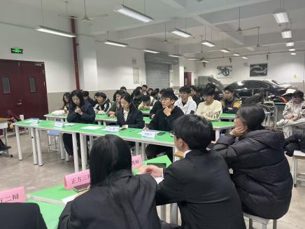 在网络社交深度融入校园生活的当下,“群聊文化”究竟是凝聚集体的纽带,还是滋生孤独的温床?2025年12月9日下午16:20,上海工商职业技术学院嘉定校区34号楼265教室内,一场围绕“网络社交中的‘群聊文化’是增强集体归属感还是导致个体孤独”的辩论赛激烈上演。智能制造与汽车学院副院长安全莅临现场指导,辅导员孙苗苗、王莹、王辰贝、黄麒玮担任评委,众多师生到场观赛,共同见证这场思想的碰撞与交锋。