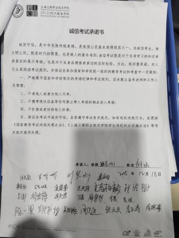 诚信应考 诚信立身 PICH现代服务学院组织开展诚信应考教育活动