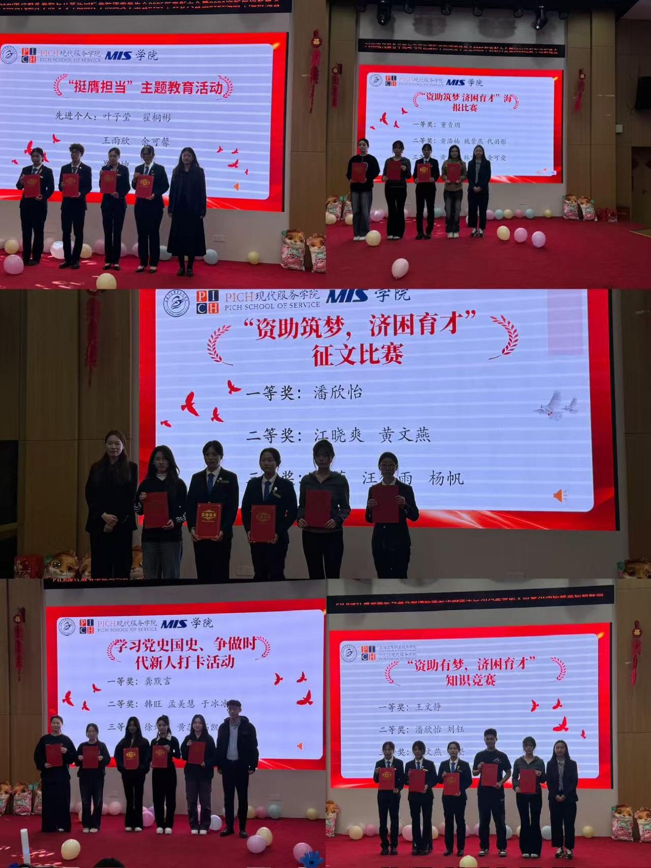 接下来分别是“资助筑梦 济困育才”海报比赛,学习党史国史、争做时代新人打卡活动,“资助筑梦,济困育才”征文比赛,“挺膺担当”主题教育活动,“资助有梦,济困育才”知识竞赛的表彰。