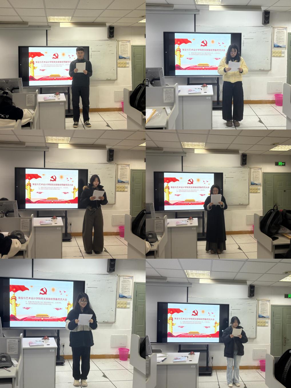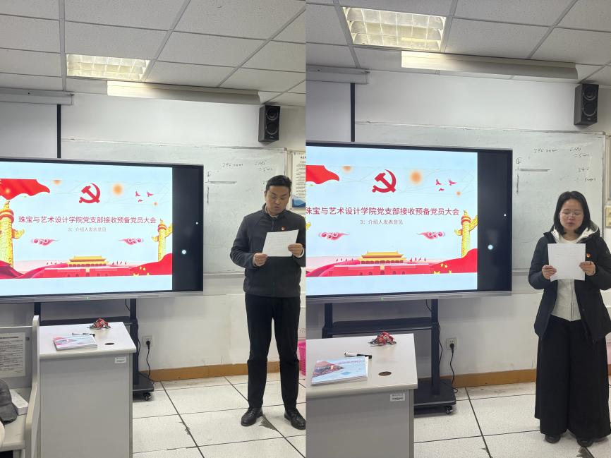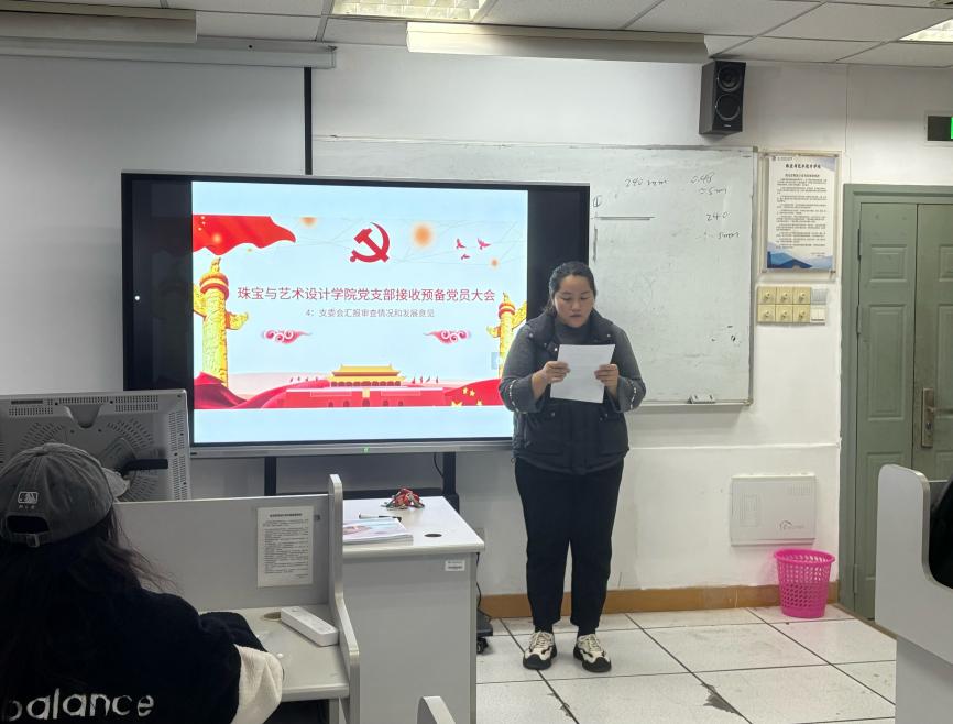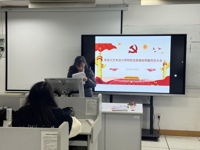 2025年12月5日中午12:00珠宝与艺术设计学院党支部在珠宝楼305隆重召开接收预备党员大会,并组织开展党员理论学习。支部应到党员19名,实到17名,其中正式党员17名,符合会议召开规定。