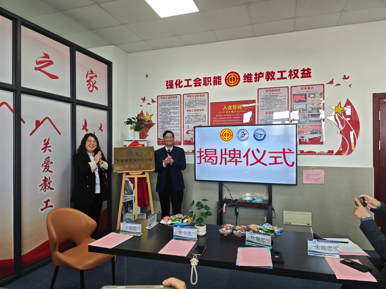 2025年12月1日中午,智能制造与汽车学院“教工小家”揭牌仪式隆重举行。学校校长叶银忠,党委副书记、副校长、工会主席张中美亲临现场,共同为“教工小家”揭幕;学校工会常务副主席王莉园、工会委员朱海忠,学院院长叶建农、党总支书记年文韬、副院长崔文一、安全,党总支副书记侯静,学院团委书记孙晓鹏及各二级单位工会小组长、学院部分教师代表齐聚一堂,共同见证这一承载着人文关怀与奋进力量的重要时刻。