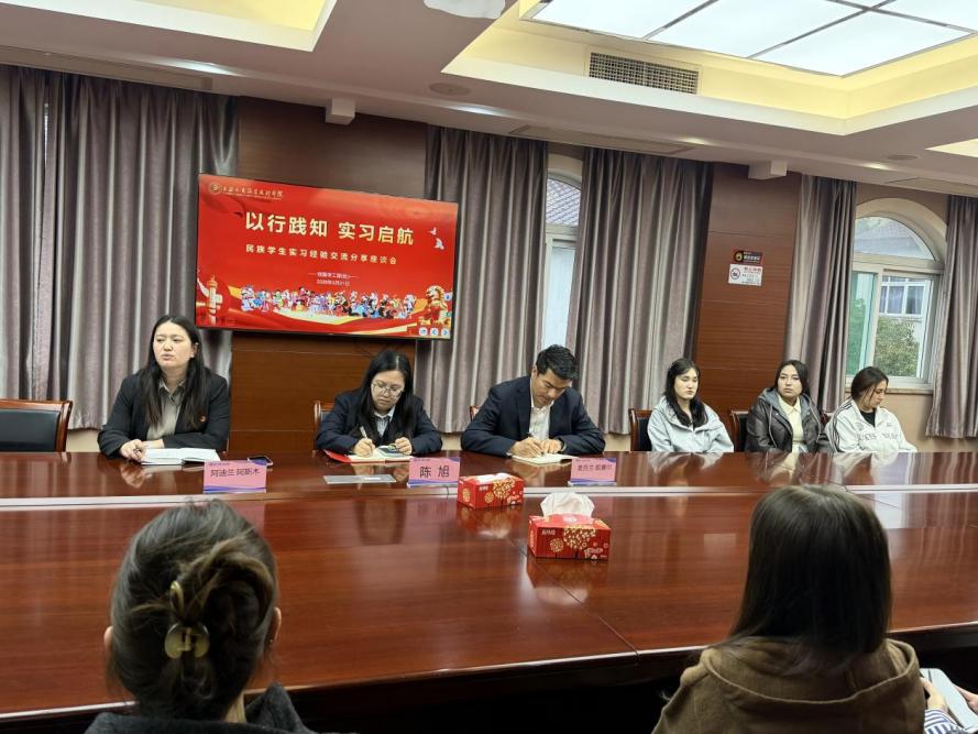 为深入落实立德树人根本任务,聚焦民族学生实习成长核心需求,强化实习动员与日常教育管理,搭建经验交流、互助共进的育人平台,我校党委学工部(处)于3月 31日17:00在嘉定校区第四会议室召开“以行践知 实习启航”民族学生实习经验交流分享座谈会。党委学工部(处)部长陈旭参加会议,各民族学生代表及喀理工访学团学生齐聚一堂,共话实习心得,共促成长进步,会议由民族辅导员阿迪兰·阿斯木主持。