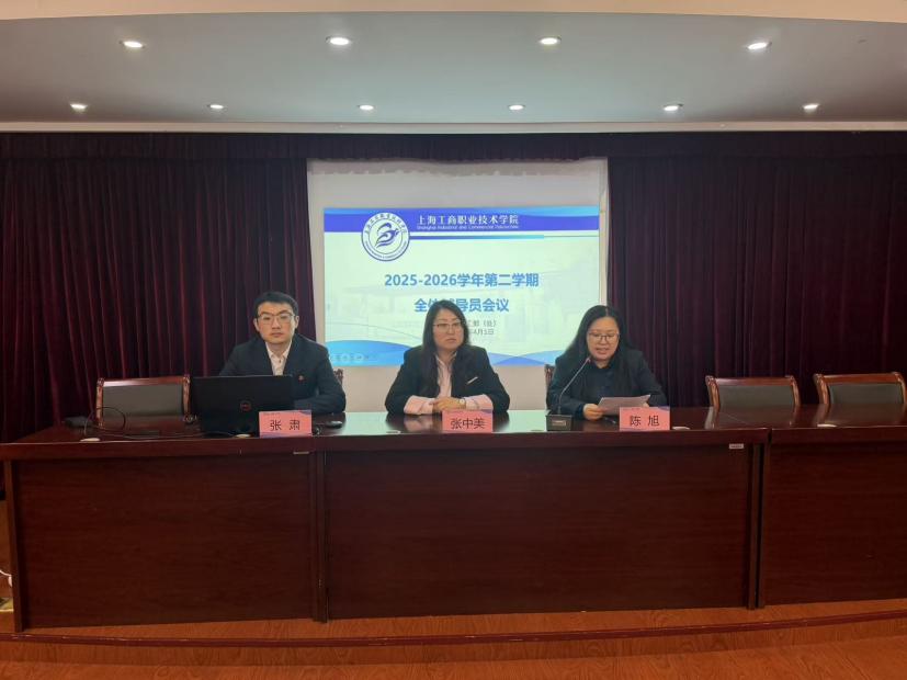 2026年4月1日16:00,上海工商职业技术学院于行政北楼报告厅召开全体辅导员大会,宣布第五届辅导员协会理事会届中调整名单,为学校辅导员队伍的专业化、职业化建设注入全新动力。党委副书记、副校长张中美出席会议,各学院党总支(直属党支部)副书记、党委学工部(处)相关人员及全体辅导员参加会议。
