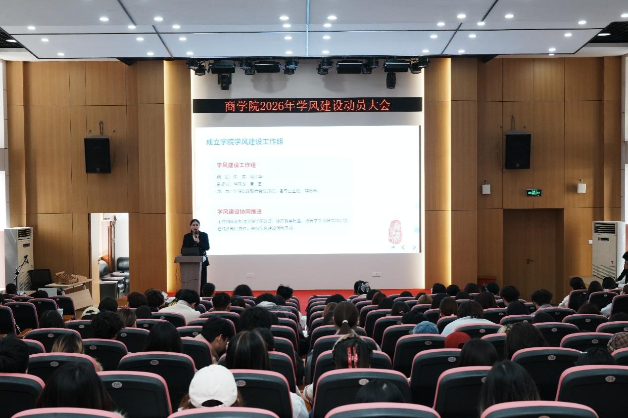 此次学风建设动员大会的召开,进一步统一了全院师生思想,凝聚了学风建设共识。商学院将以此次学风建设月为契机,在全院范围内持续开展系列主题活动,不断强化班风学风建设,积极营造勤学笃行、奋发向上的育人氛围,以优良学风为依托,切实提升人才培养质量,助力每一位学生成长成才。